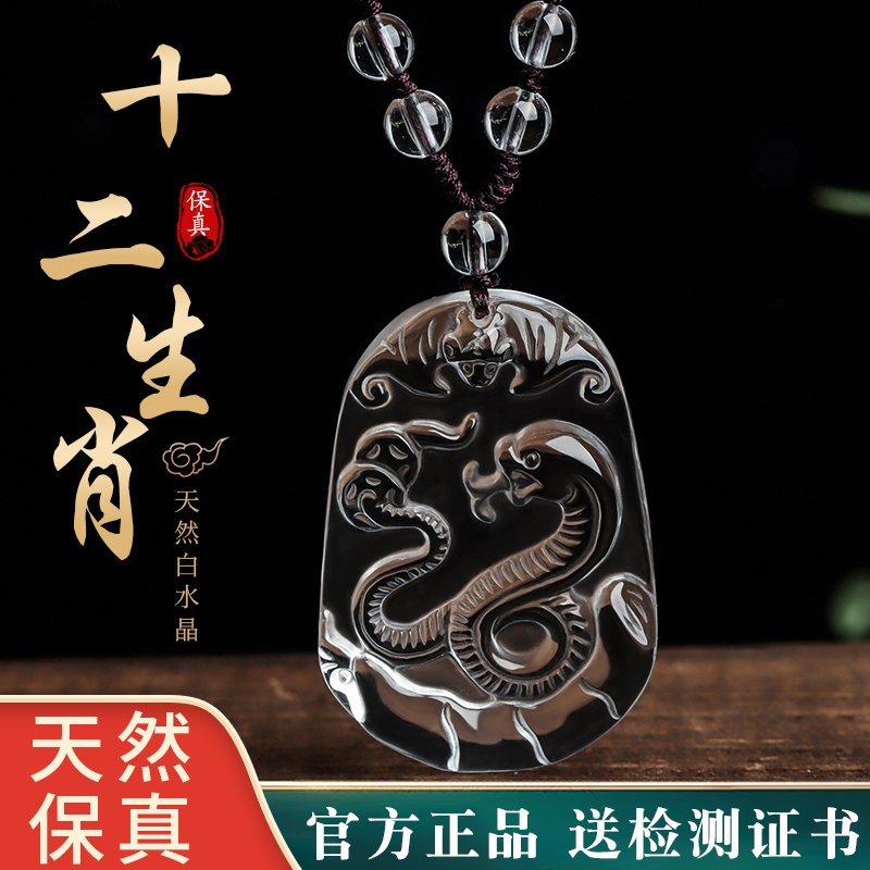 天然白水晶女挂件十二生肖鼠龙虎马蛇羊鸡男女吊坠本命年儿童项链