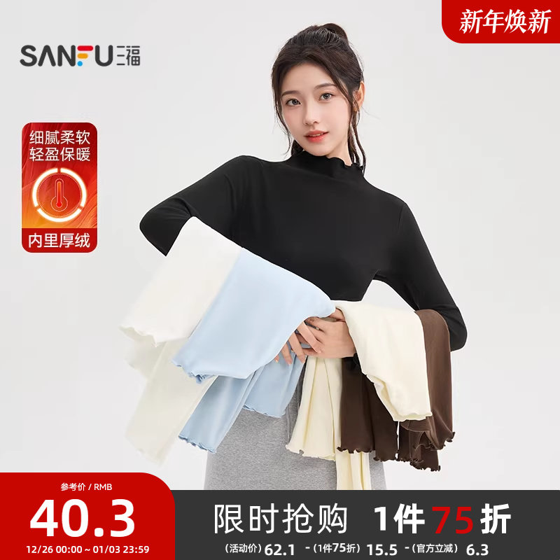 三福打底衫2025新款秋冬季保暖小中领毛衣无缝内搭上衣女装504415