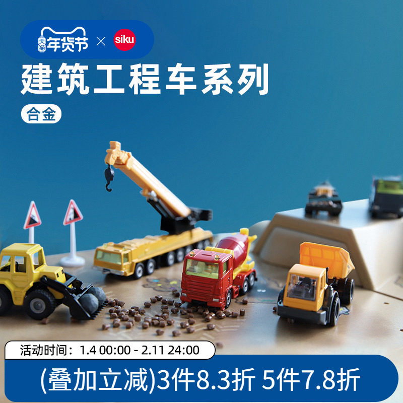 siku合金车模重型吊车起重机工程车儿童挖掘机新年礼物摆件男孩