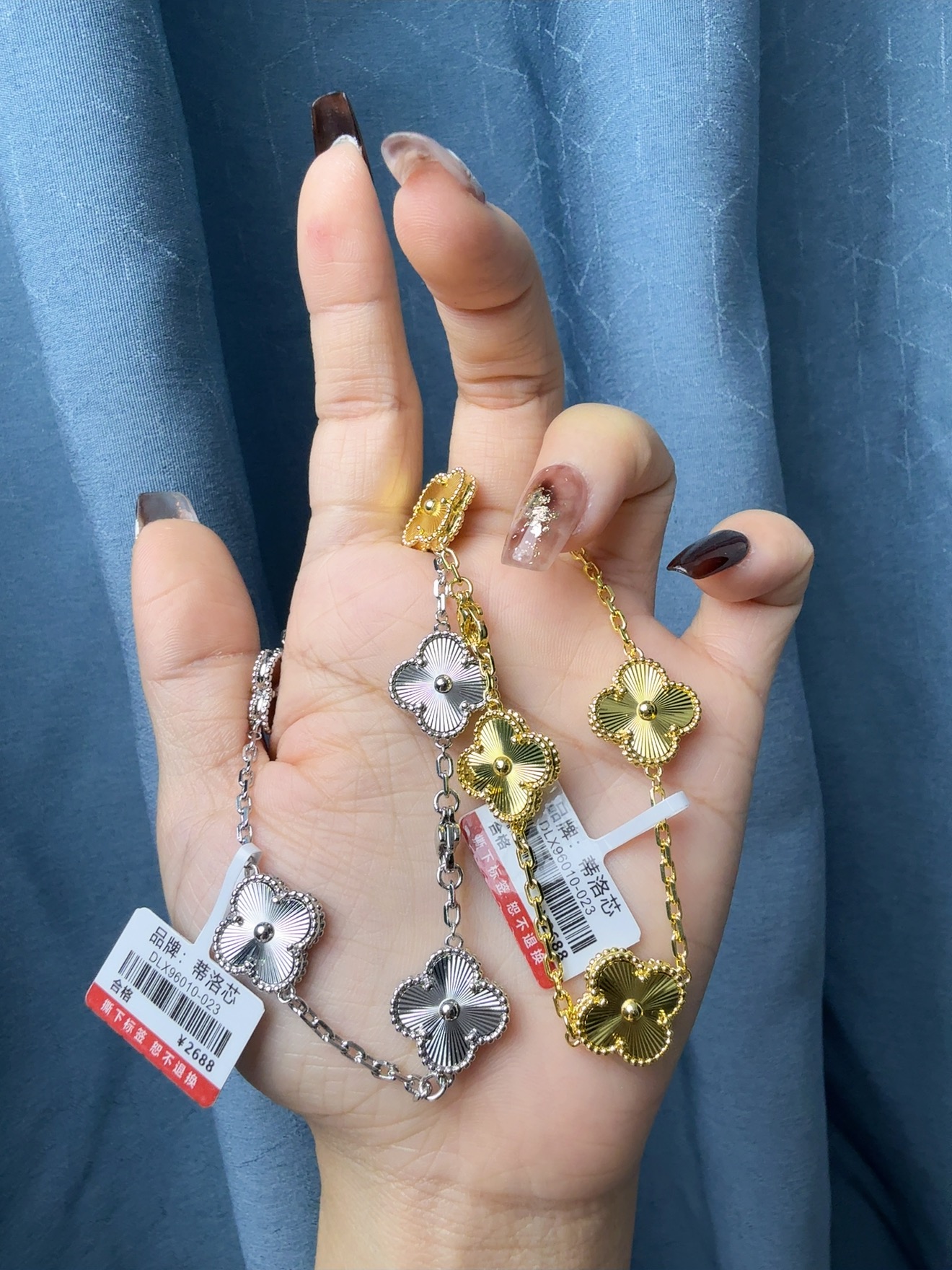 叠戴满分!洗手不掉色日式轻奢5颗四叶草纤细s925纯银百搭手链女