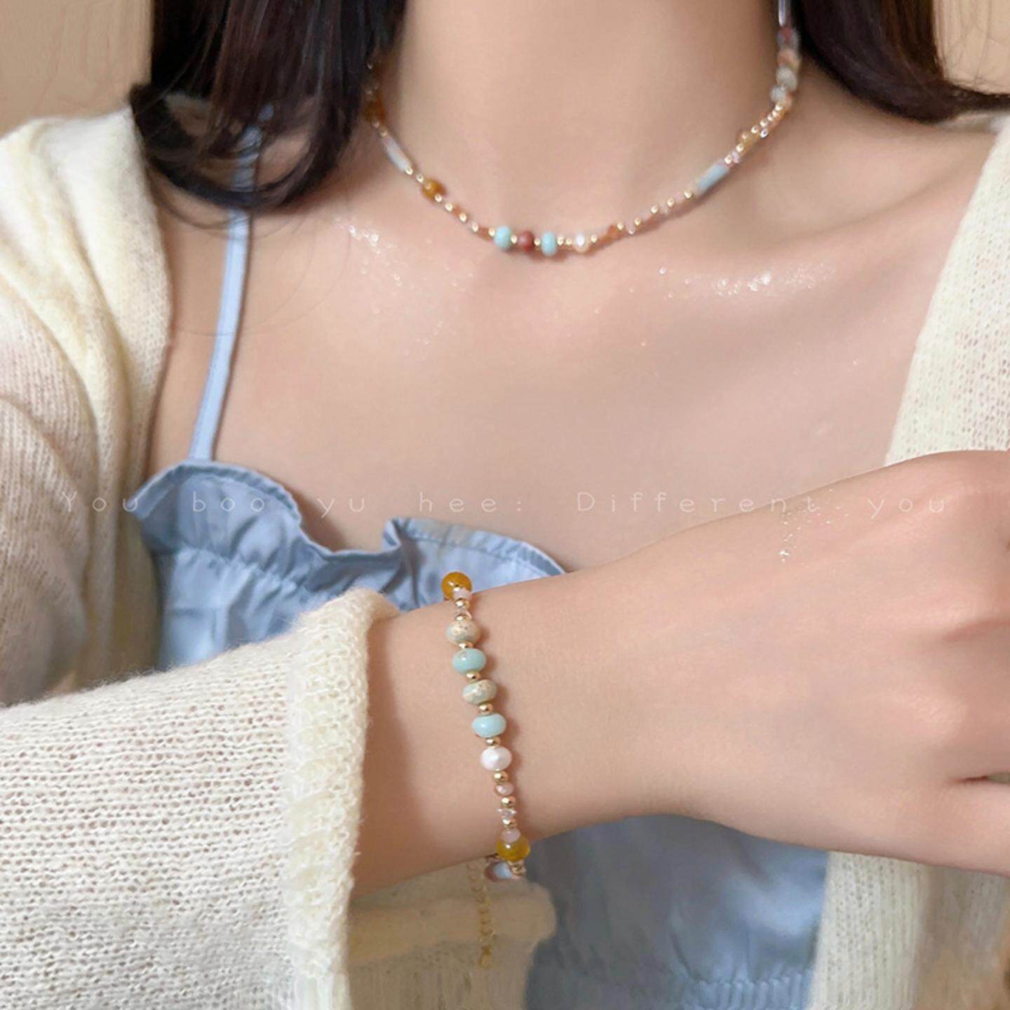 多巴胺米珠珍珠圆柱串珠手链时尚气质小众感锁骨链个性百搭手链女