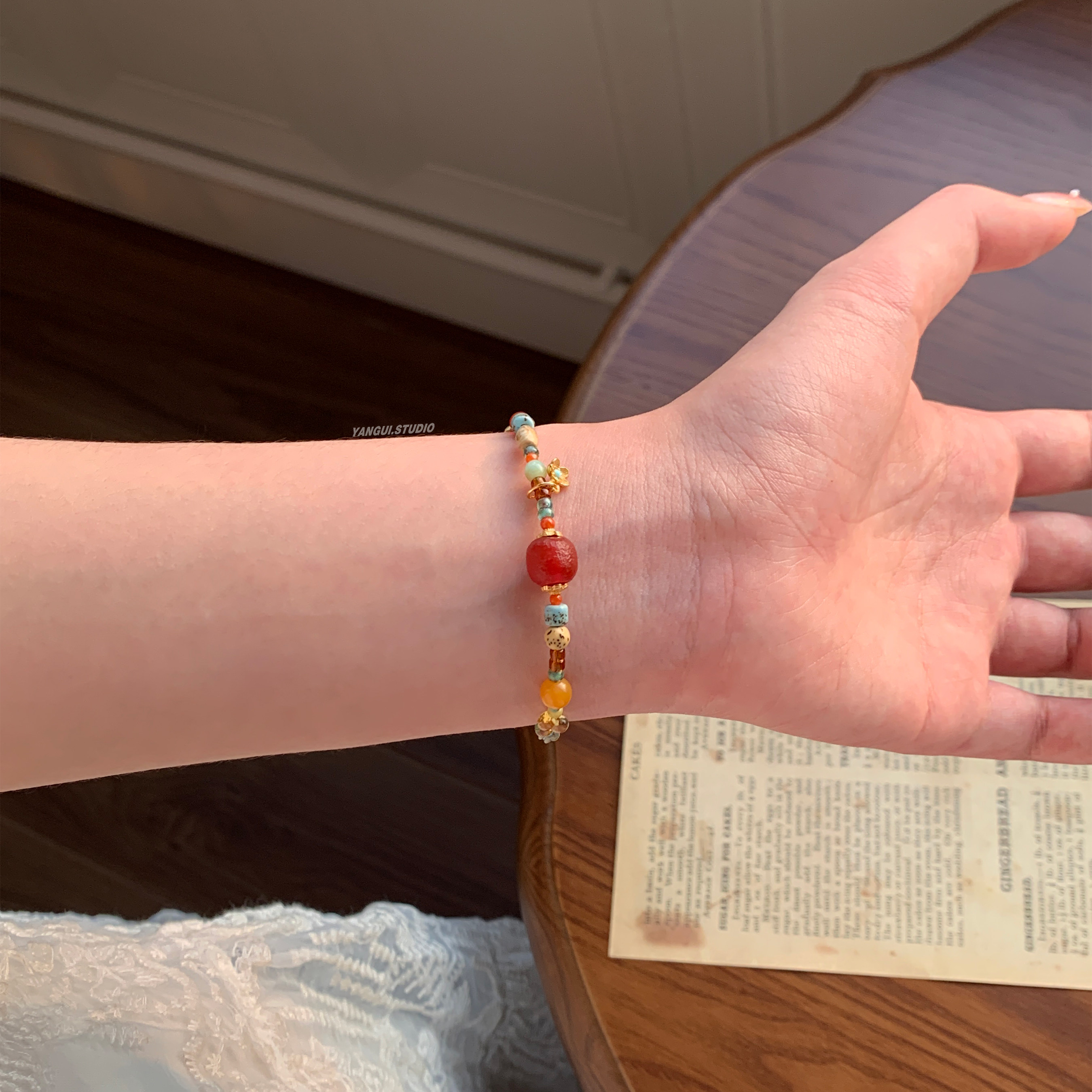 Yangui原创「禧宜念」国风新年红玛瑙串珠小众手工叠戴百搭手链女