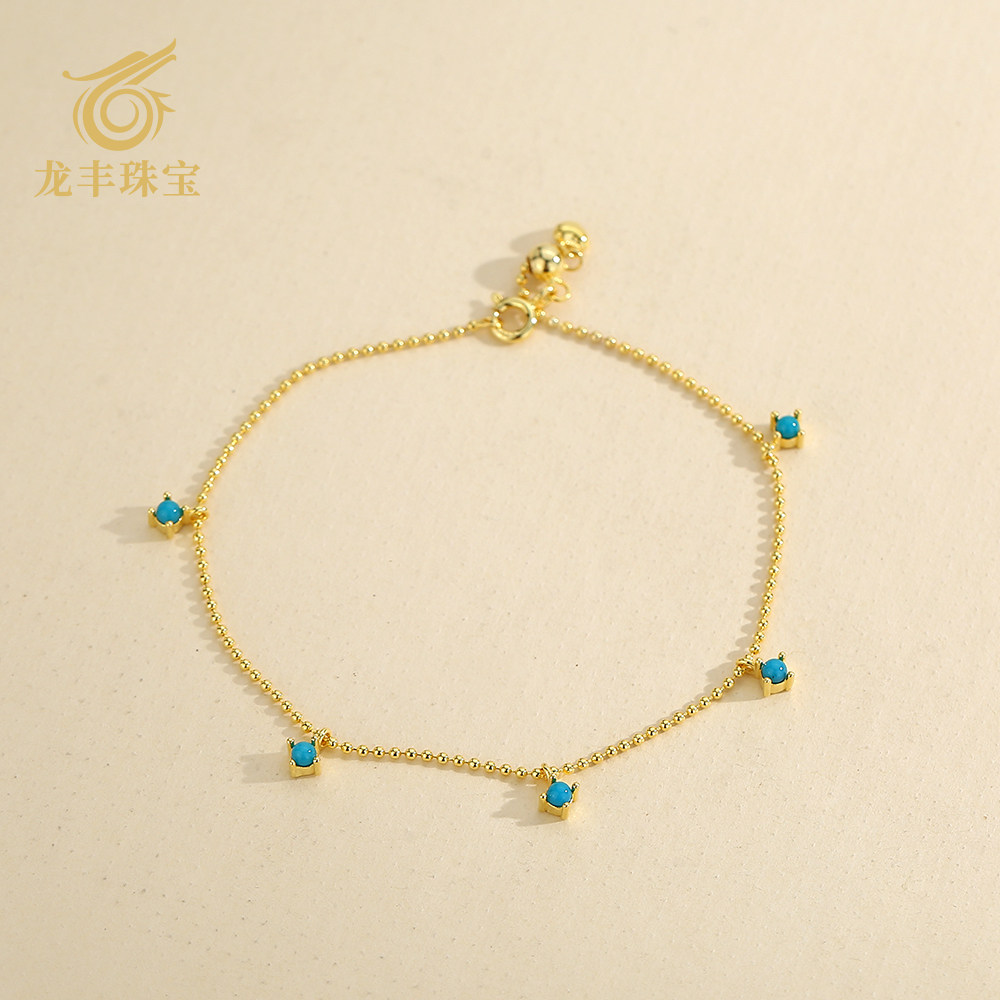 龙丰绿松轩S925银镀18K金天然绿松石圆珠满天星百搭手链女款高级