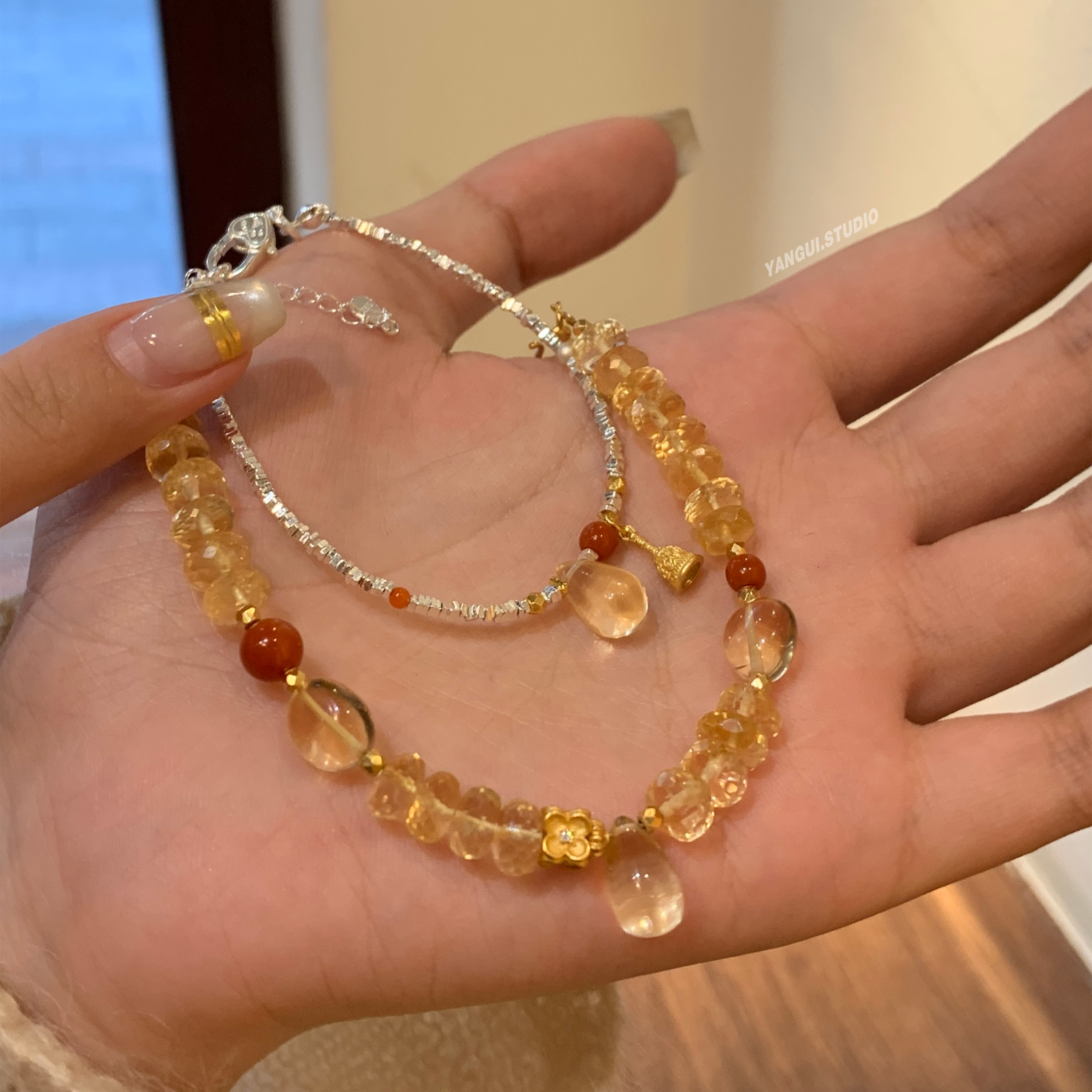 Yangui原创「浮金滴」新中式中古风巴西黄水晶手串南红百搭手链女