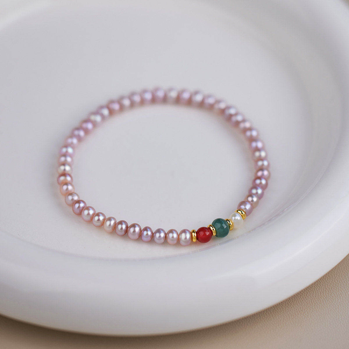 BRI.R/佰色传情淡水珍珠S925银和田玉珍珠时尚百搭手链女手环手串