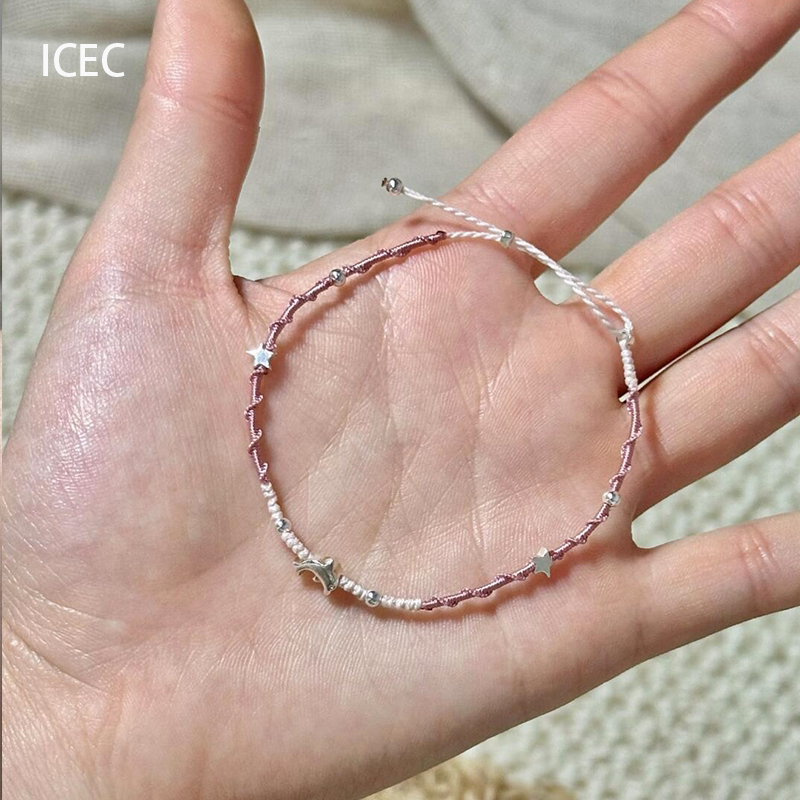 S925纯银海豚星星粉色编绳手绳高级感小众精致手饰时尚百搭手链女