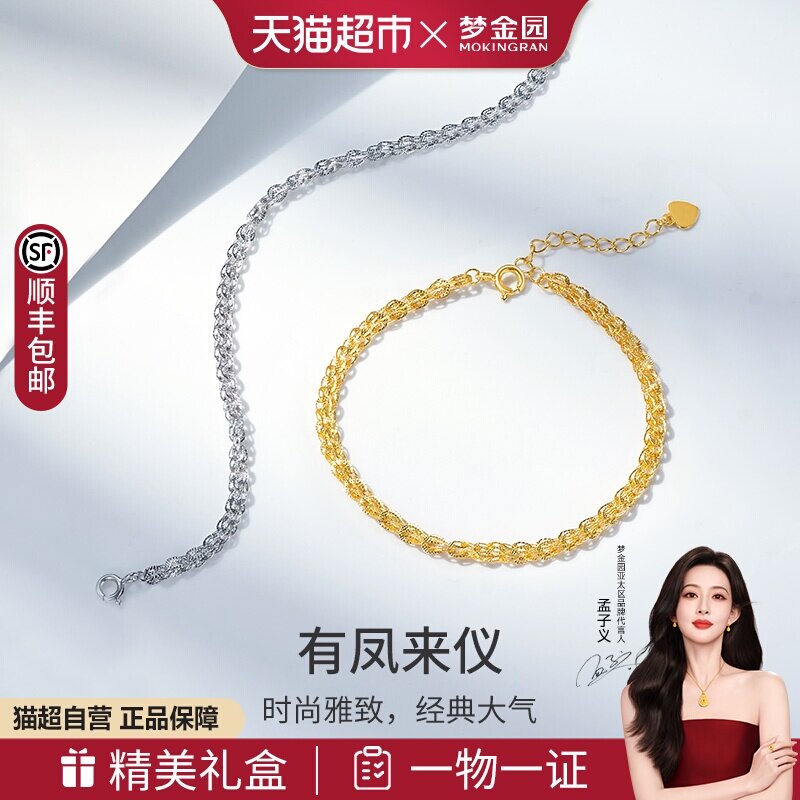 梦金园s925银凤尾银手链小清新高级感简约百搭手链女节日礼物送礼