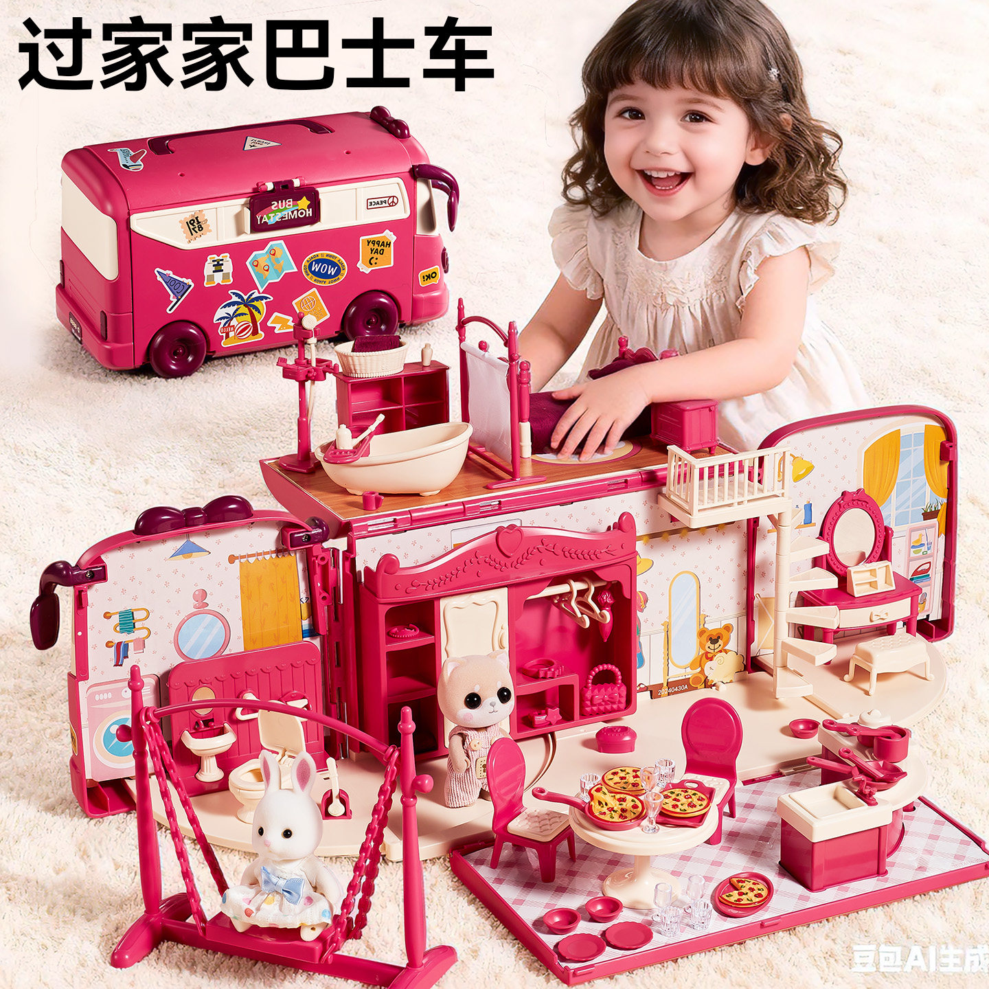 儿童过家家玩具女孩子喜欢巴士房车兔子玩偶娃娃屋3-6岁生日礼物5