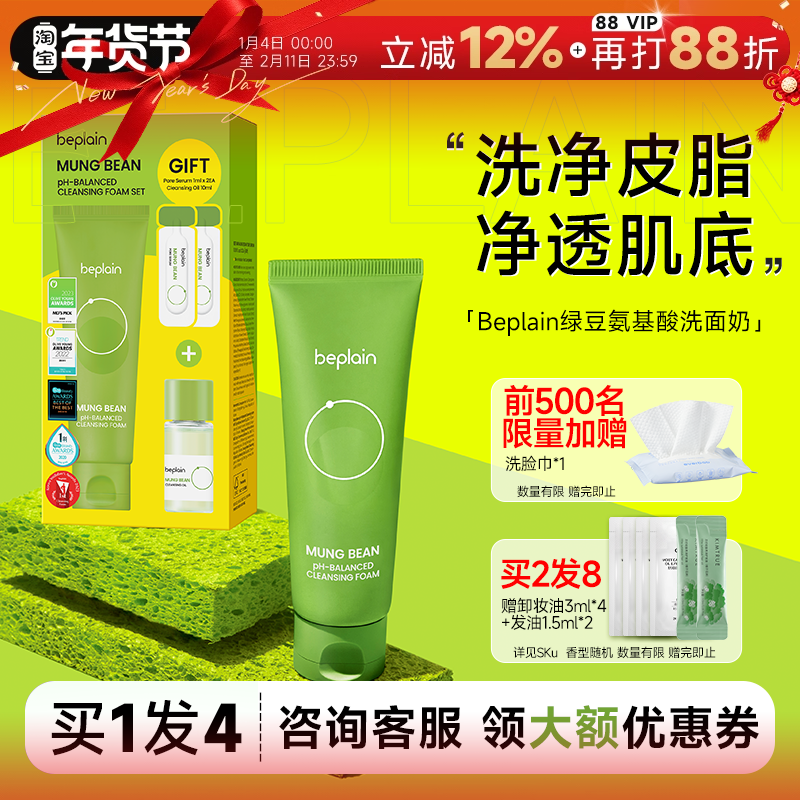 【新年礼物】韩国beplain碧菲音绿豆精华洗面奶氨基酸敏肌女2支装