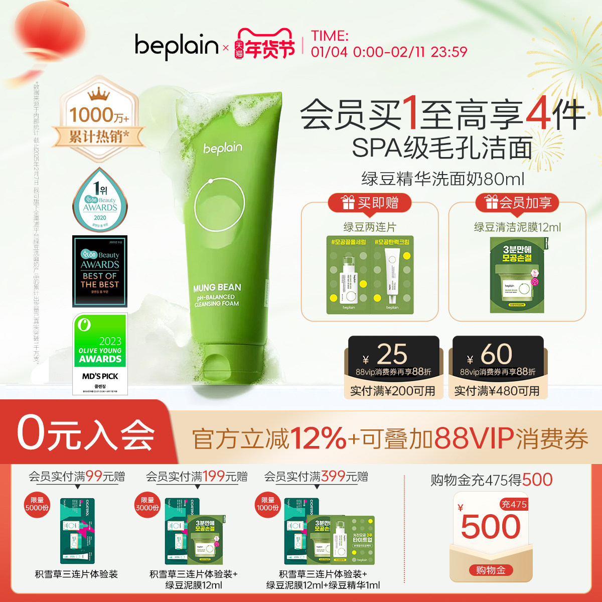 韩国beplain碧菲音绿豆洗面奶女氨基酸洁面乳oliveyoung官方正品