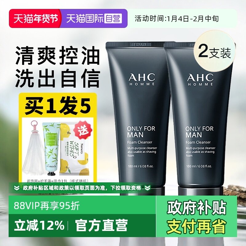 【自营】韩国AHC男生洗面奶男士控油深层清洁面乳2支装【临期】