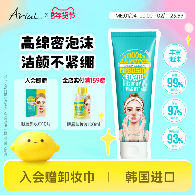 Ariul艾藜儿泡沫洗面奶温和清洁韩国进口保湿干皮洁面乳女不紧绷