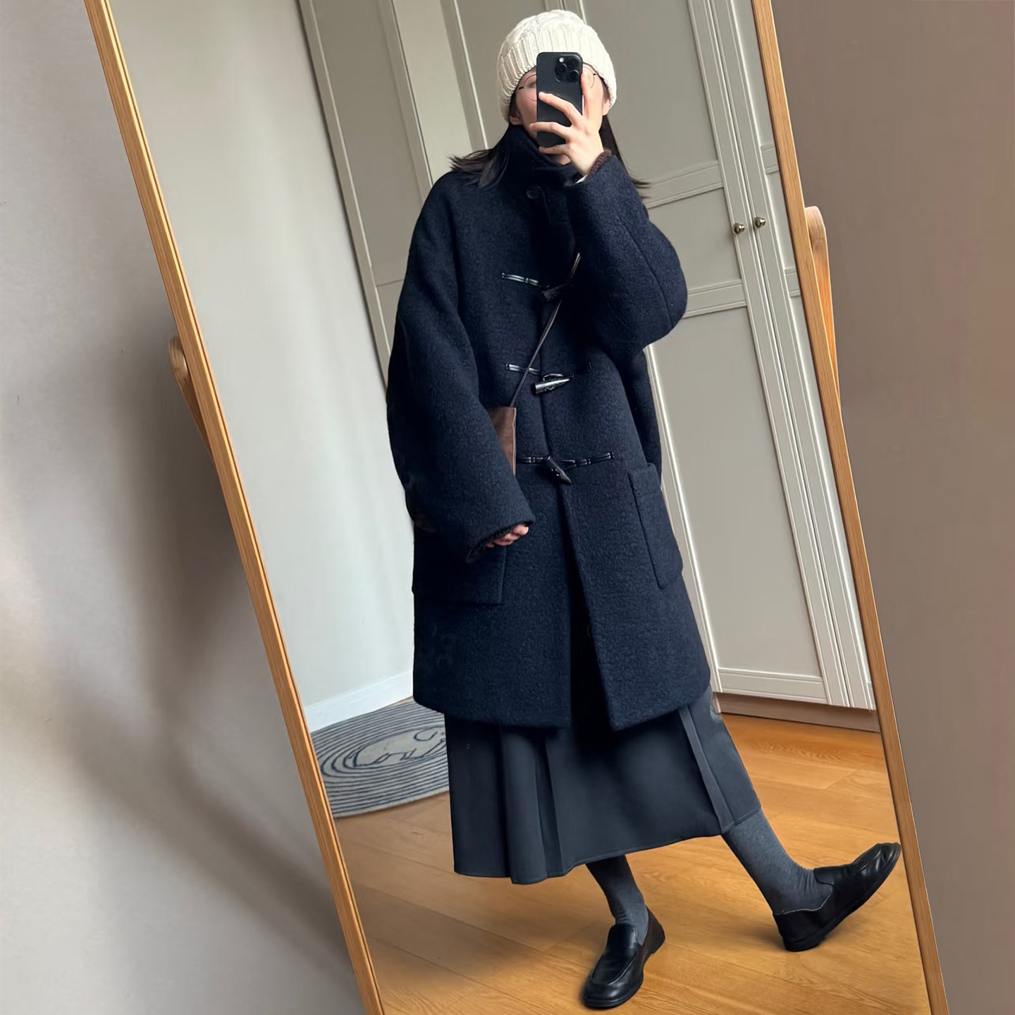 - 茧型毛呢大衣女 宽松 中长款