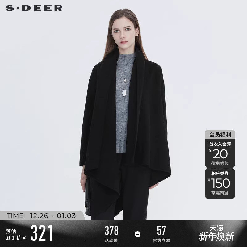 sdeer圣迪奥冬装女装休闲开襟不规则拼接黑色毛呢大衣女S20461701