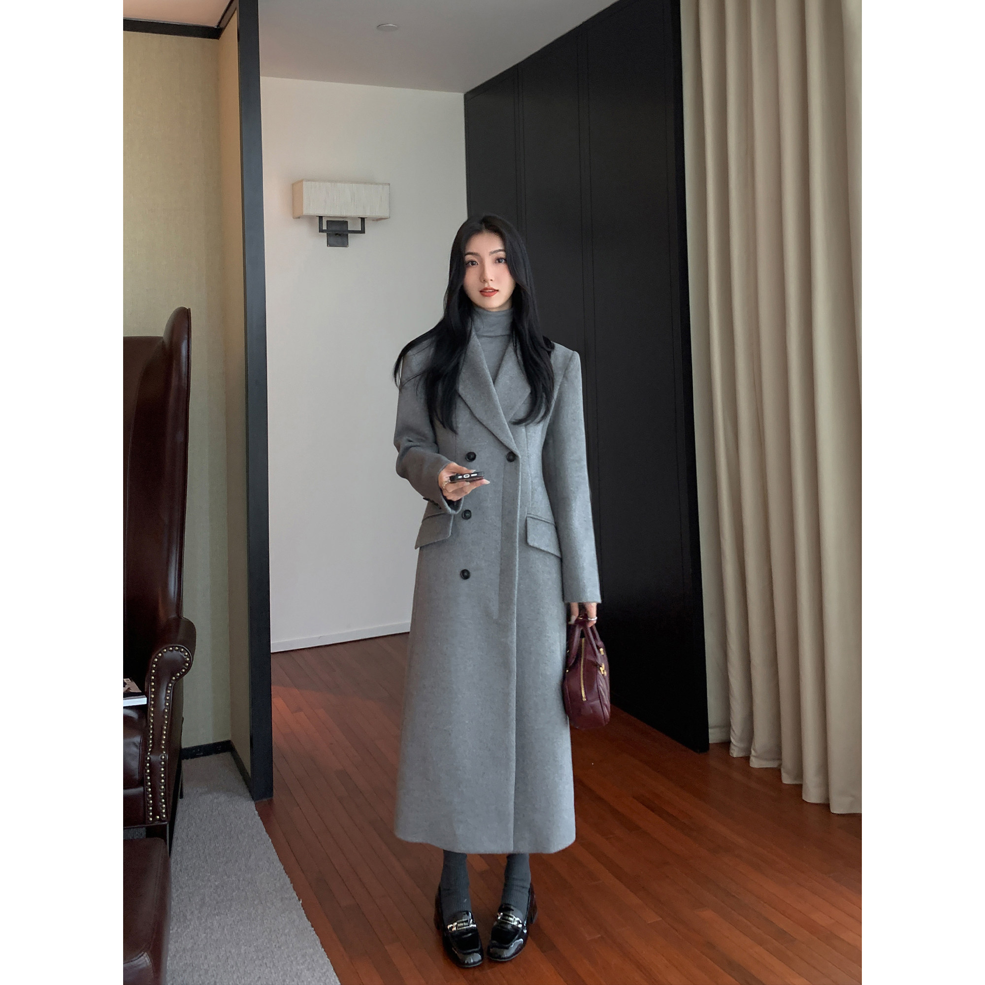 - 呢子大衣加长款女