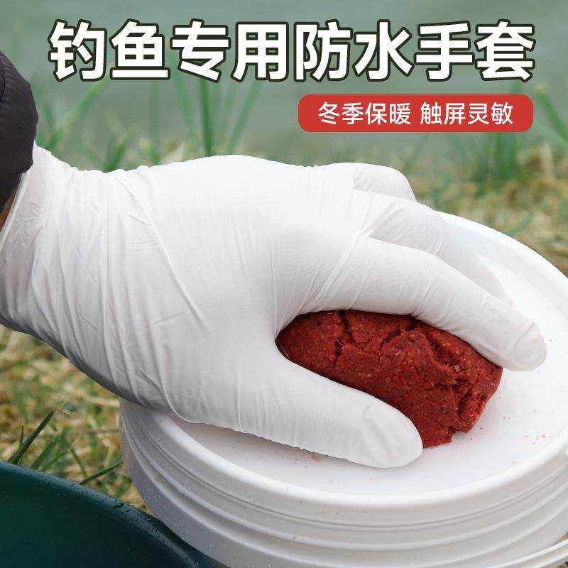冬季开饵防水手套一次性橡胶保暖钓鱼搓饵拉饵上蚯蚓虾防脏免洗手