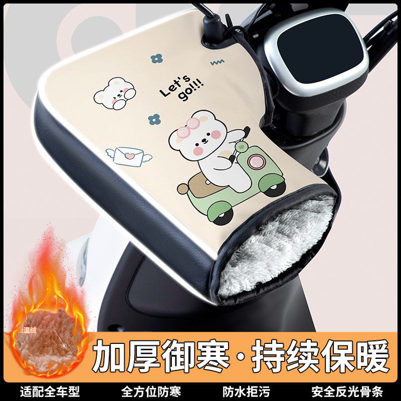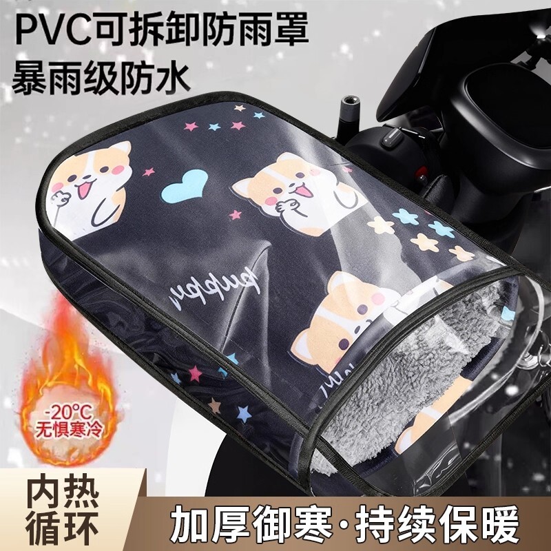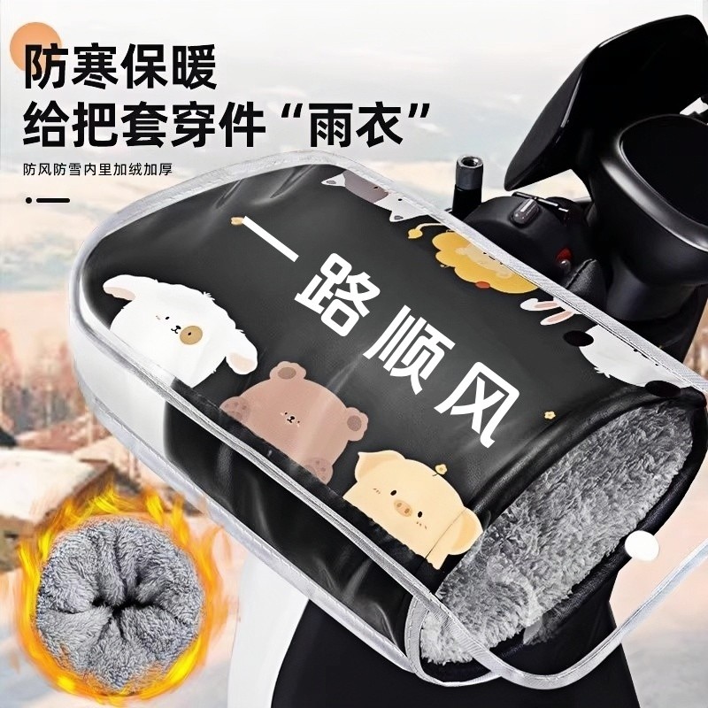 冬季电动车手把套防风防水电瓶车加绒卡通护手摩托车保暖防水手套