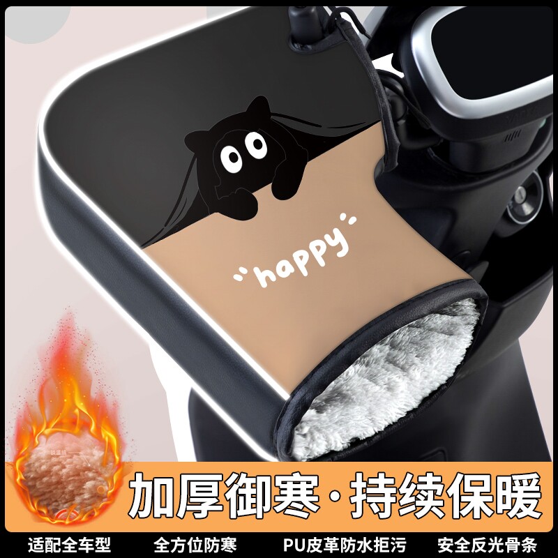 电动摩托车手把套冬季电瓶车皮革防水手套加绒加厚新款保暖护手罩