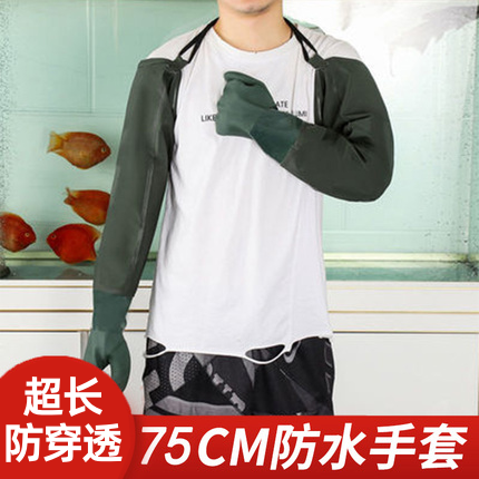 防水手套杀鱼专用夏天防刺加长手臂抓鱼加绒橡胶家务洗碗厨房耐用