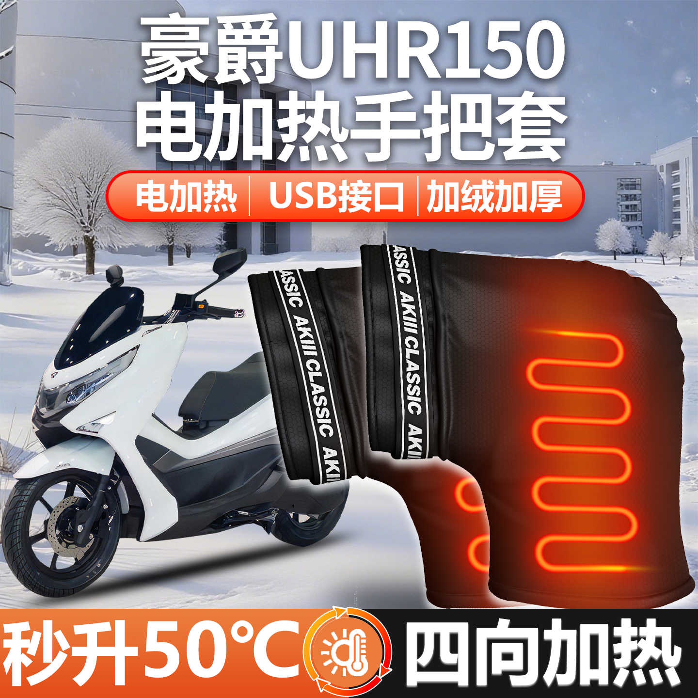 适用豪爵UHR150专用加大手把套电加热手把套加热把套冬季防水手套