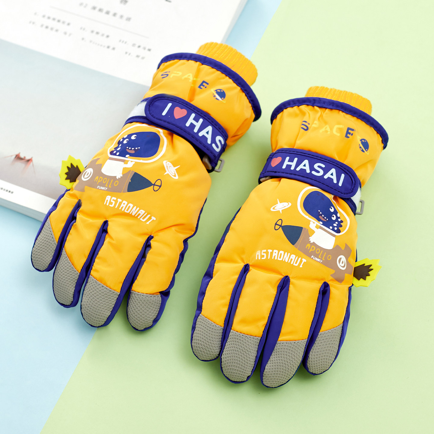 儿童滑雪玩雪防水手套冬季男童可爱卡通加绒加厚东北防风防寒保暖