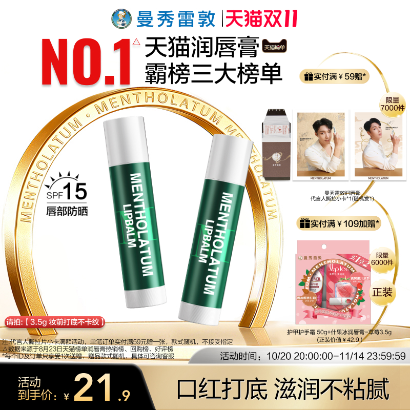 曼秀雷敦润薄荷唇膏保湿滋润补水护唇口油学生款妆前无色官方正品
