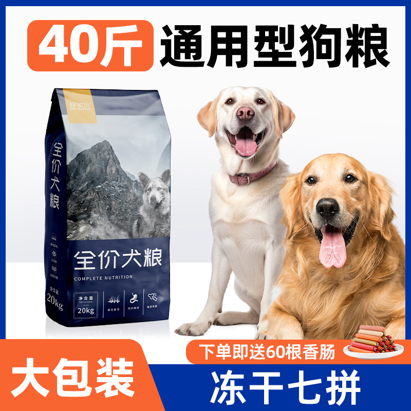 狗粮通用型40斤成犬幼犬金毛拉布拉多中大型犬冻干犬粮20kg大包装