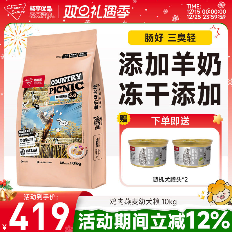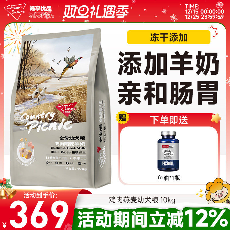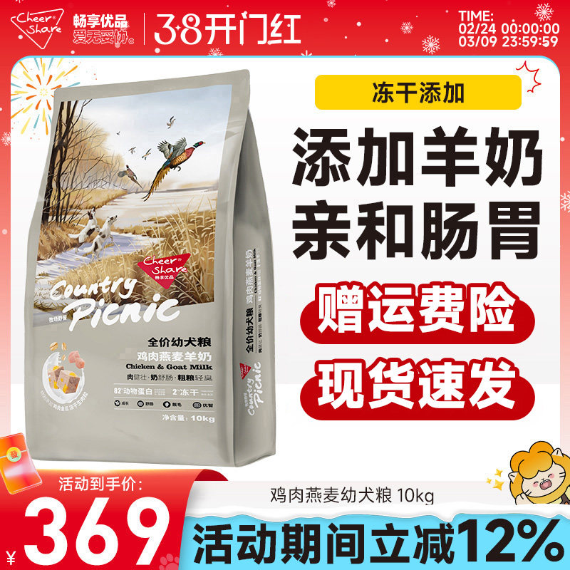 畅享优品牧场野餐鸡肉燕麦添加羊奶冻干金毛拉布拉多幼犬狗粮10kg