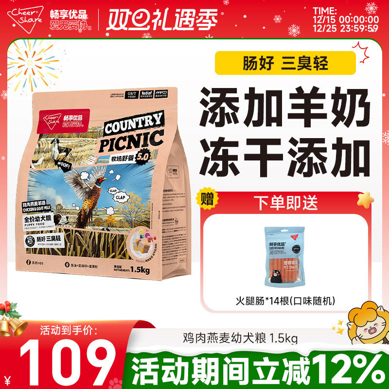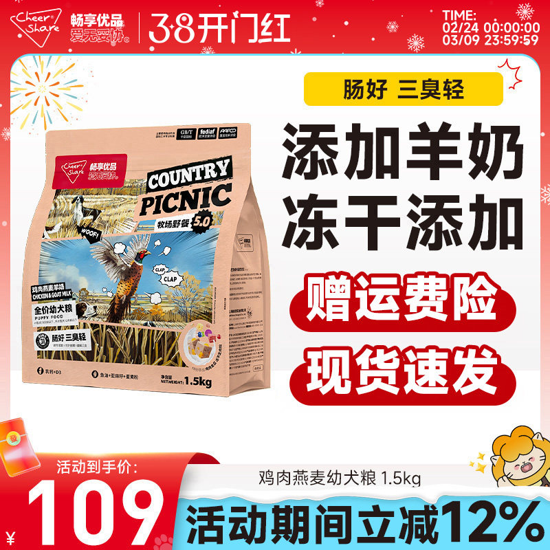 畅享优品牧场野餐5.0鸡肉燕麦羊奶冻干金毛拉布拉多幼犬狗粮1.5kg