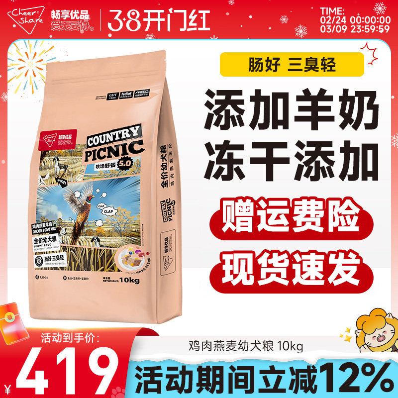 畅享优品牧场野餐5.0鸡肉燕麦羊奶冻干金毛拉布拉多幼犬狗粮10kg