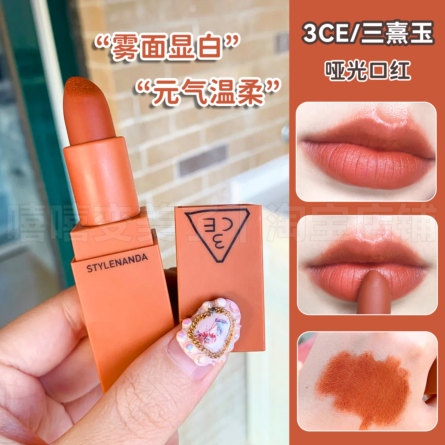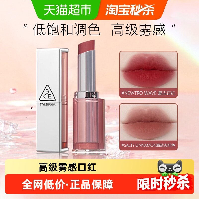 【情人节礼物】3CE柔雾管口红丝绒持久唇膏复古正红海盐肉桂色