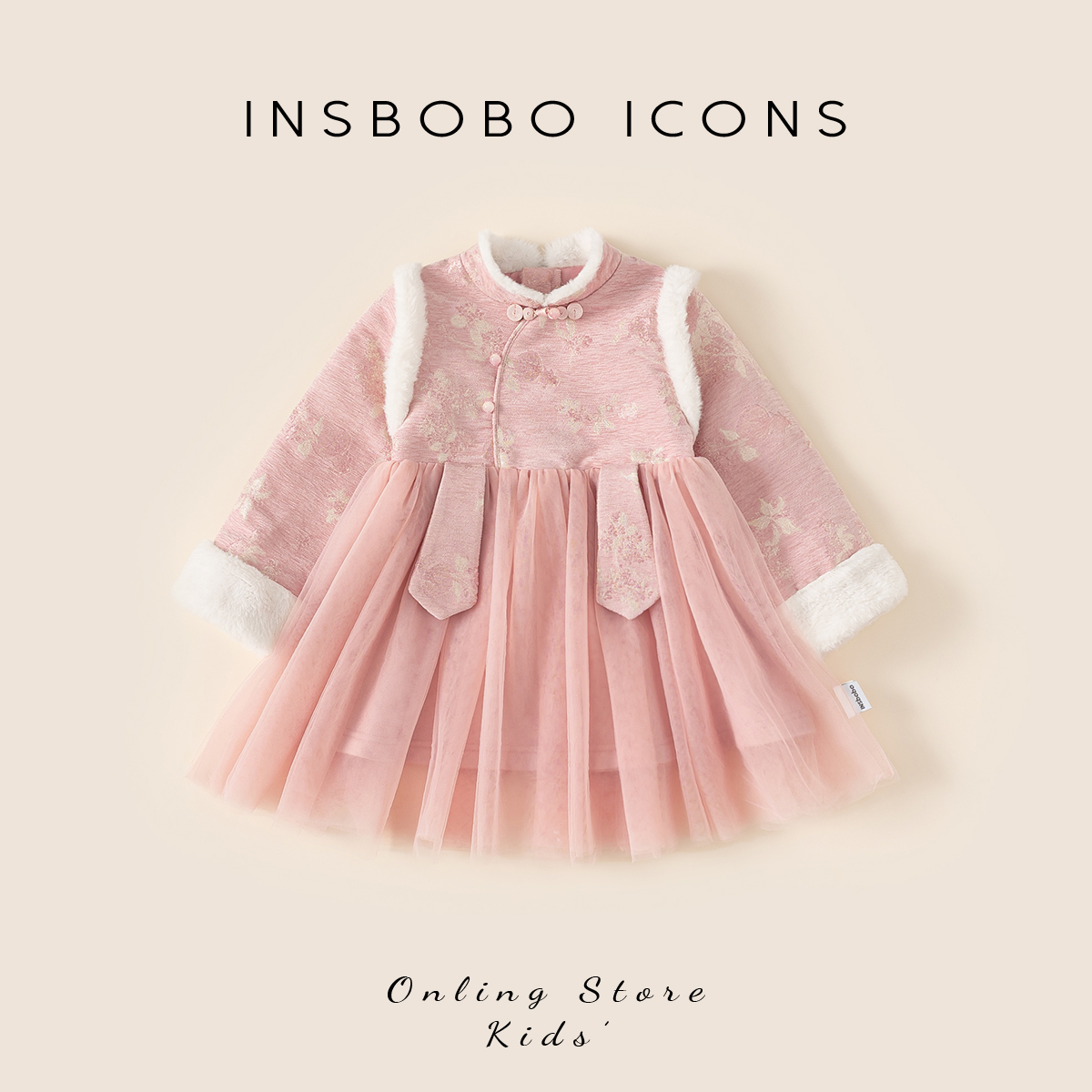 INSbobo女童唐装2025新款儿童冬装中式连衣裙宝宝周岁汉服秋冬装