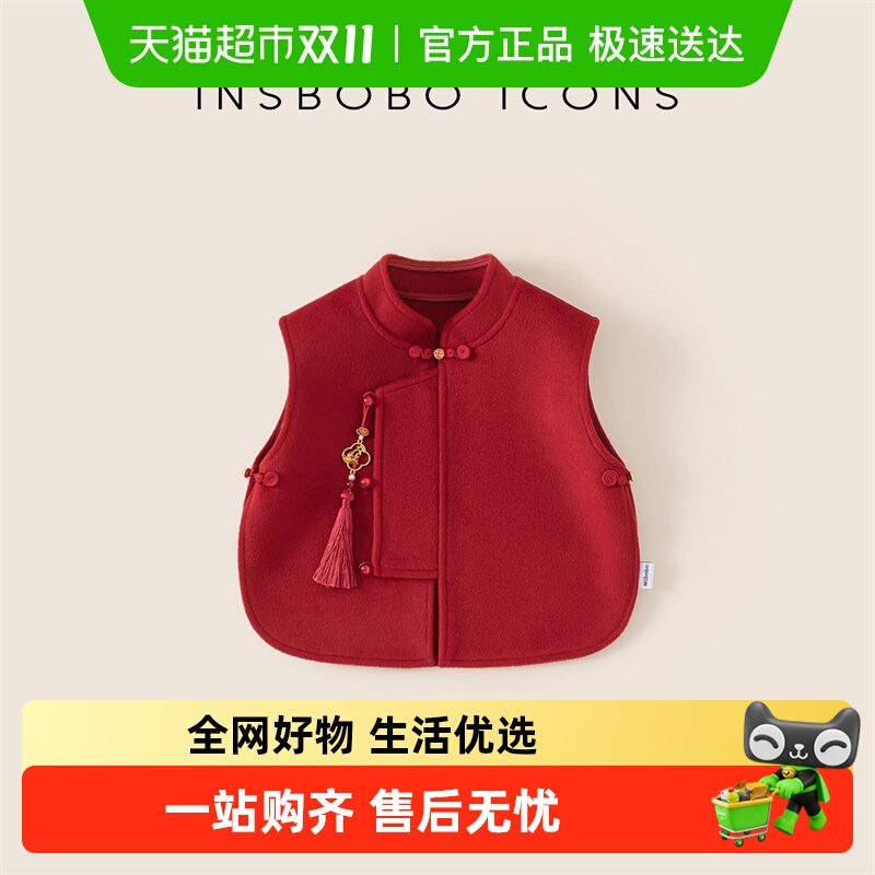 INSbobo女童唐装2025新款儿童红色冬装棉服马甲宝宝中式秋冬衣服