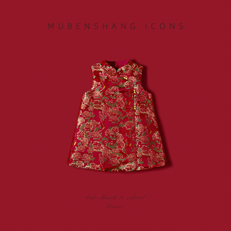 木本尚女宝宝秋冬汉服旗袍马甲夹棉中国风过年衣服女童唐装拜年服
