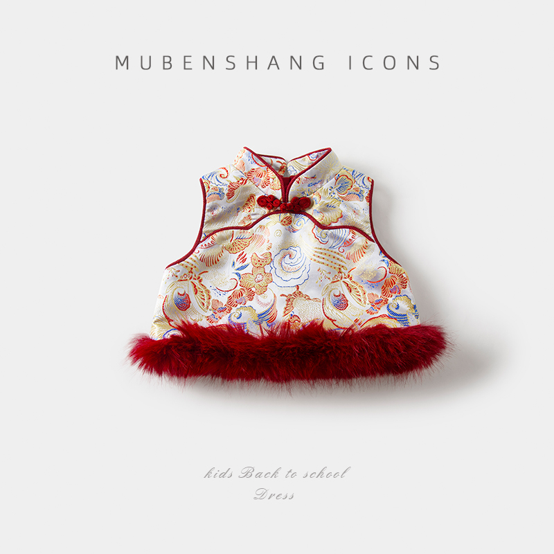 木本尚女宝宝秋冬汉服旗袍马甲夹棉加厚中国风女童唐装拜年服过年