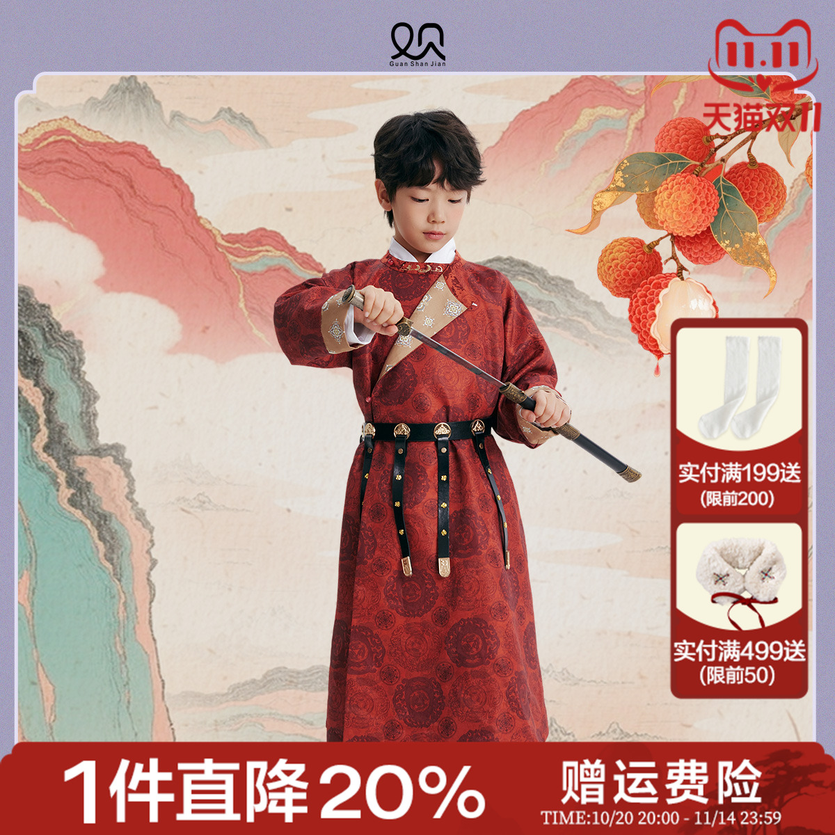 观山见童装男女童唐装圆领袍2025秋季新款儿童套装古装演出服外套