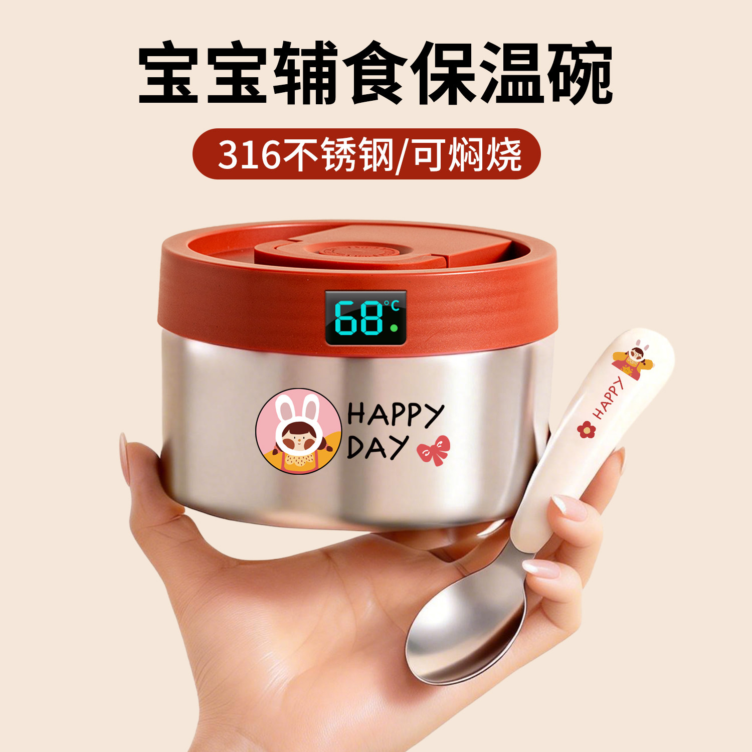 宝宝辅食保温碗婴儿专用碗316防摔防烫儿童餐具恒温幼儿注水保温