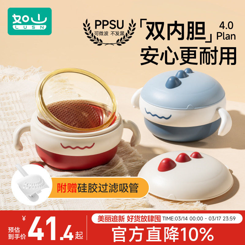 如山ppsu宝宝辅食碗婴幼儿吃饭专用防摔恒温碗儿童餐具注水保温碗