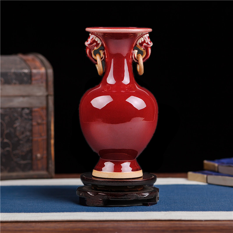 景德镇陶瓷器仿古钧瓷郎红双耳小花瓶花插时尚家居客厅装饰工艺品