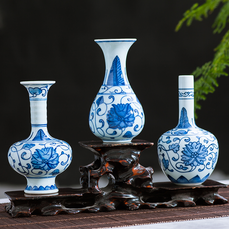 景德镇陶瓷器仿古青花手绘迷你小花瓶花插茶道创意博古架茶桌摆件