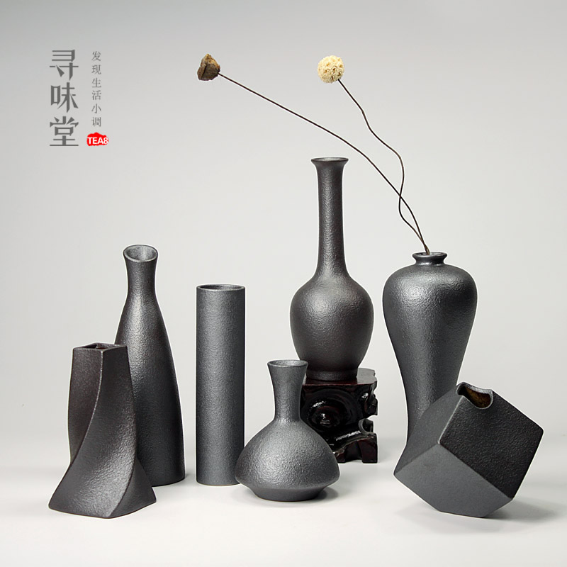 粗黑陶禅意陶瓷小花瓶花插日式水培容器花器花道家居园艺茶道摆件
