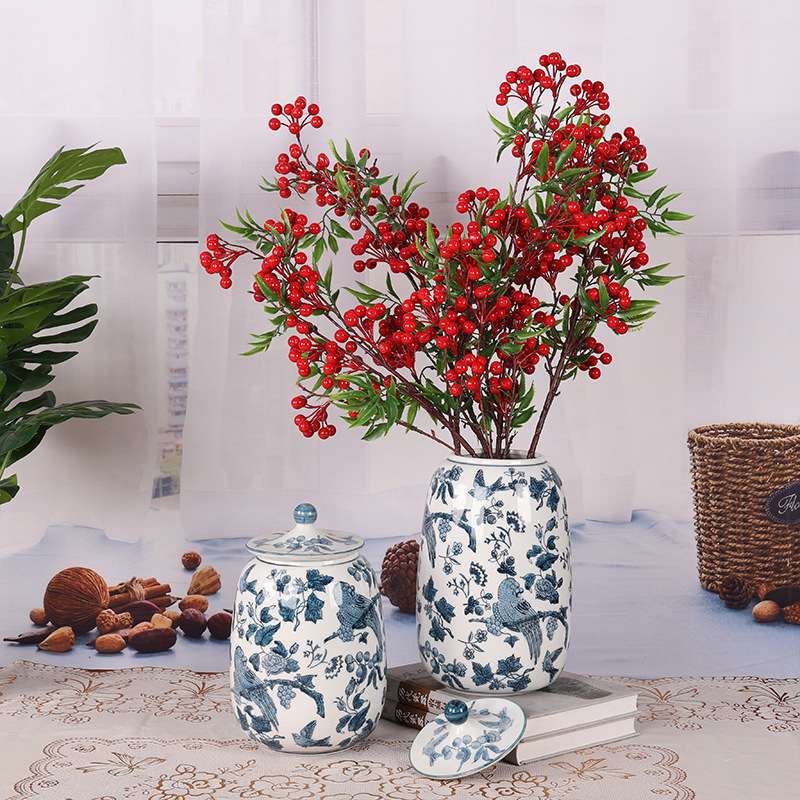 景德镇陶瓷器鲜花青花仿古小花瓶花插酒柜客厅装饰中式工艺品摆件