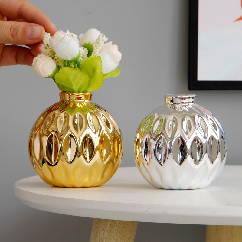 创意电镀金色陶瓷小花瓶花插现代简约家居装饰摆件桌面花瓶工艺品