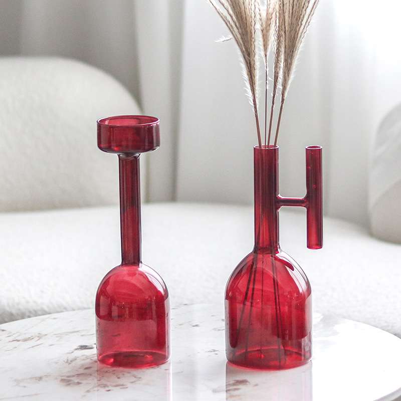 现代简约玻璃小花瓶花插花器烛台组合摆件北欧家居客厅餐桌装饰品