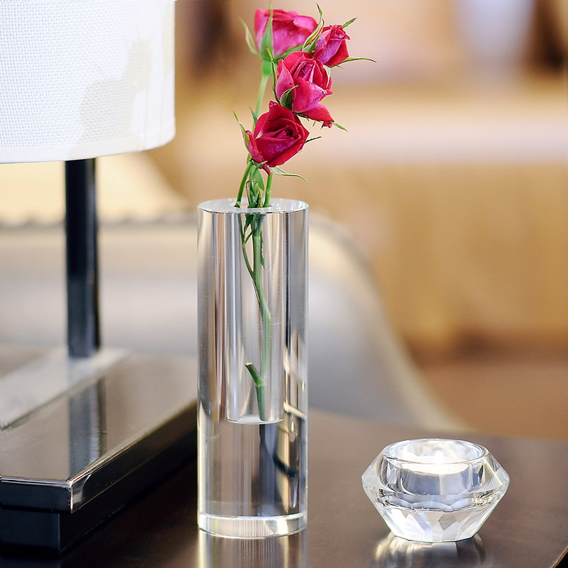 水晶小花瓶花插花器 书桌办公桌窗台装饰摆件 创意个性小花瓶摆件