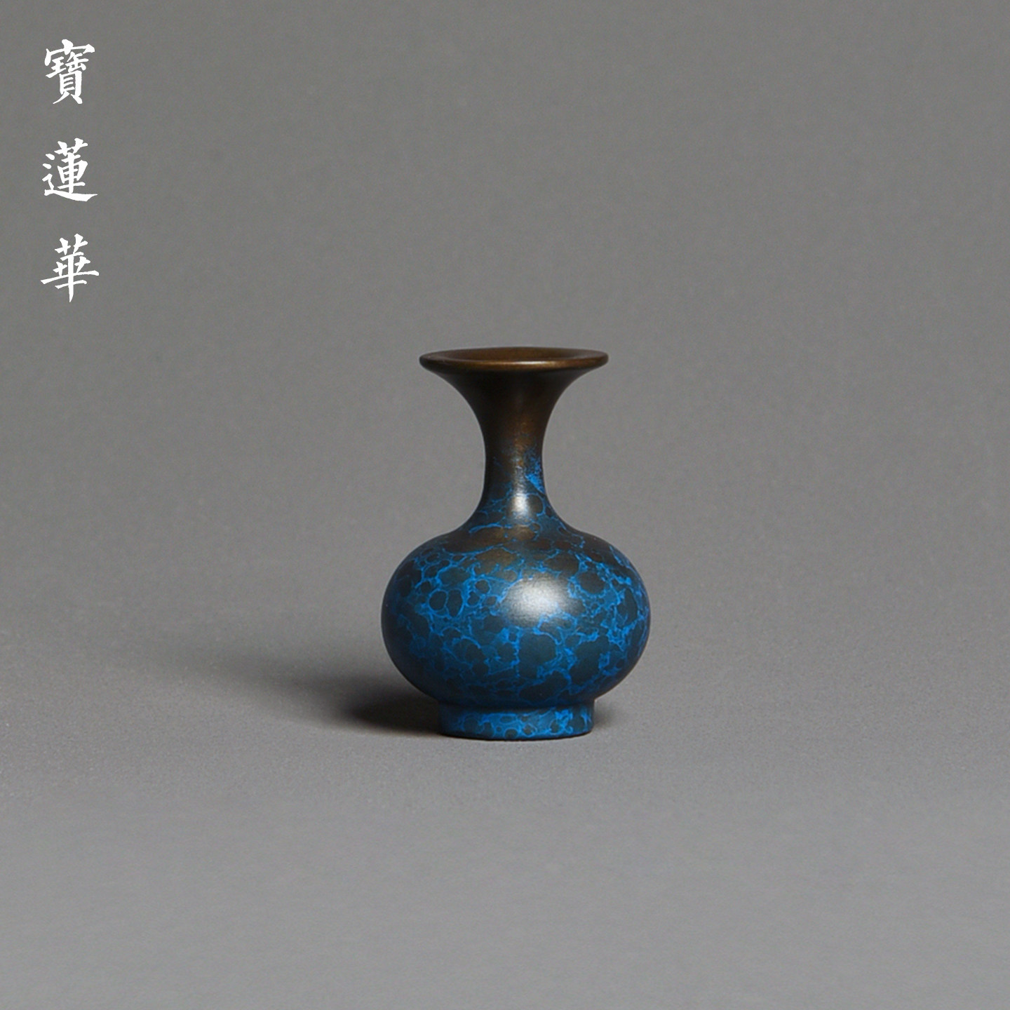湛蓝彩小铜瓶盖置花插摆件 实心黄铜花瓶放壶盖托盖架 铜镇纸茶玩