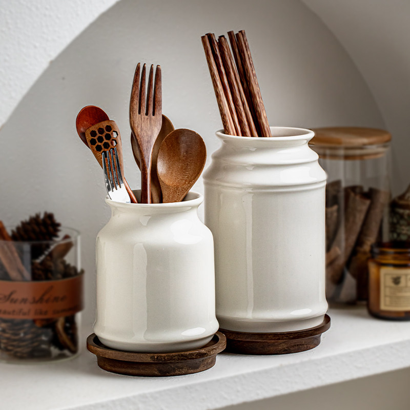 芦苇〖收纳好物〗沥水陶瓷筷子筒厨房筷子勺子收纳盒桌面花插摆件