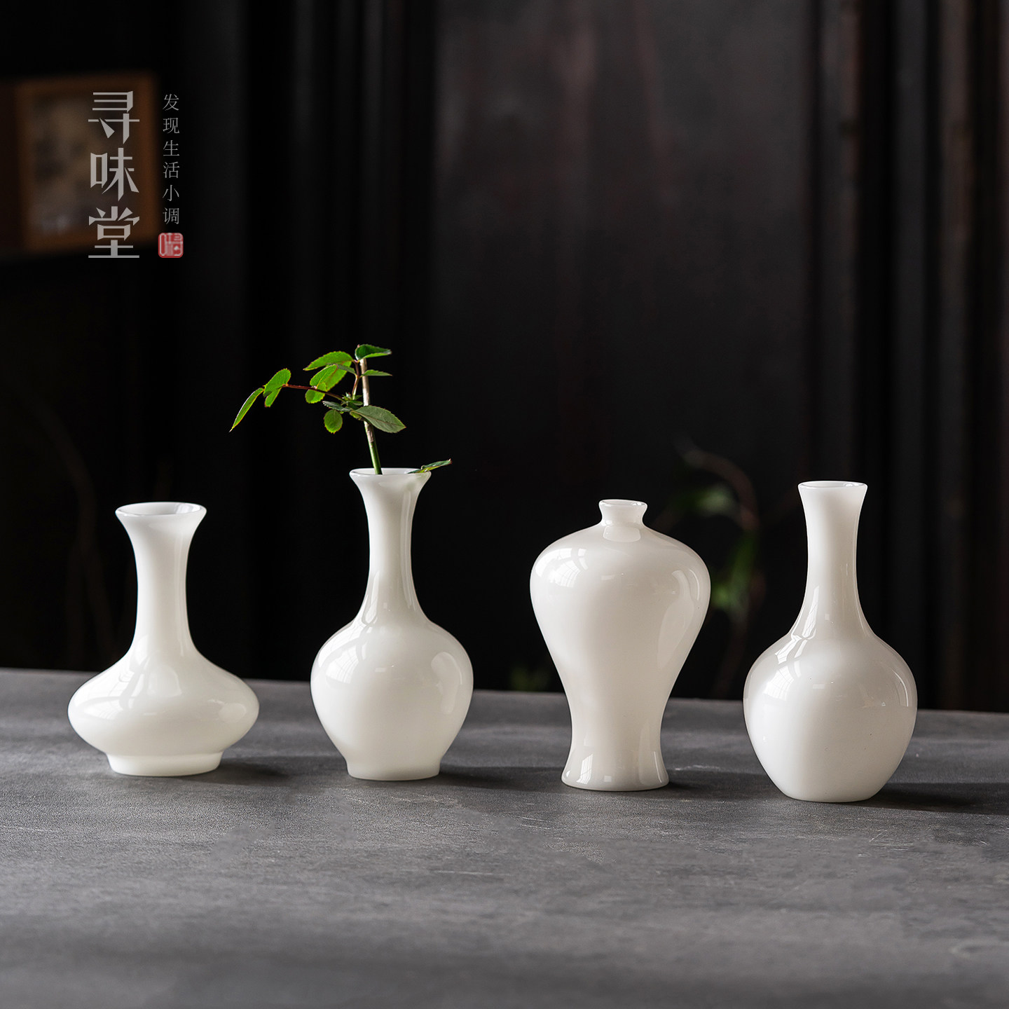 璞玉冰种玉瓷小花器|高档白瓷花瓶茶道花插陶瓷茶桌摆件居家装饰