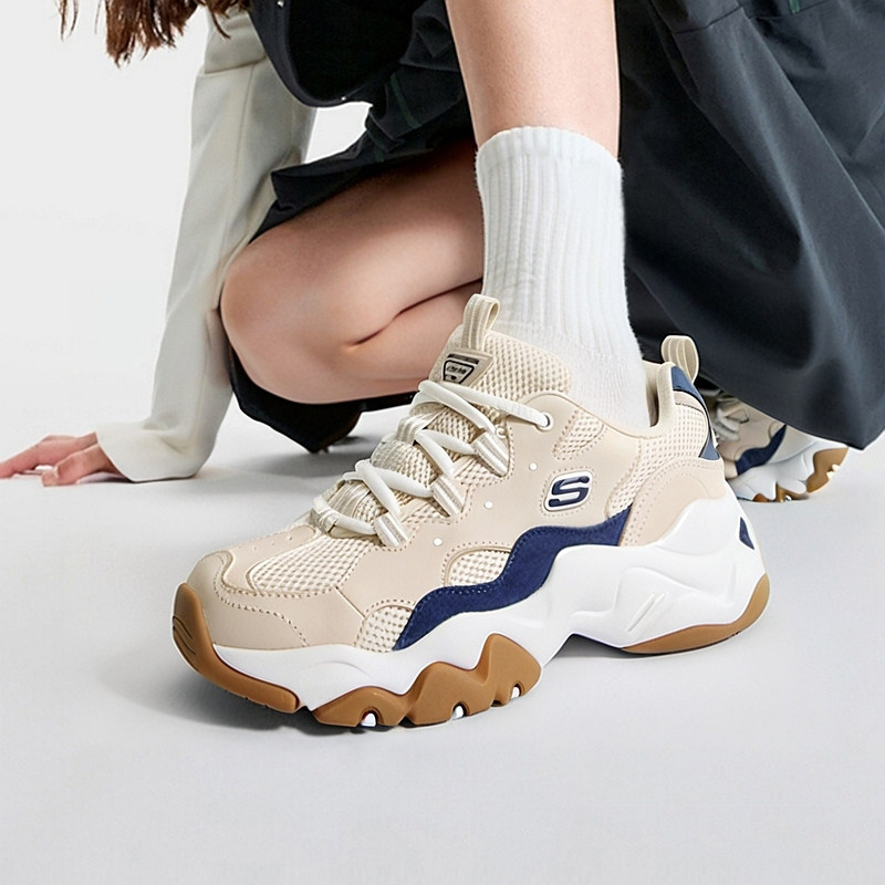 斯凯奇官方正品熊猫鞋女鞋冬季新款女士运动鞋厚底显高复古老爹鞋
