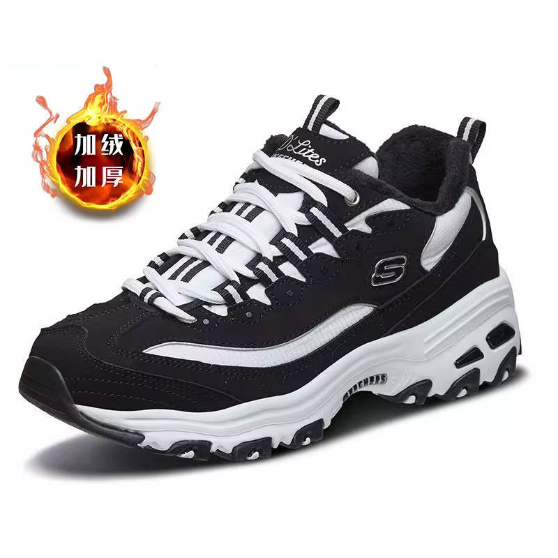 斯凯奇官方旗舰店女鞋加绒熊猫鞋老爹鞋冬季棉鞋女士休闲鞋运动鞋